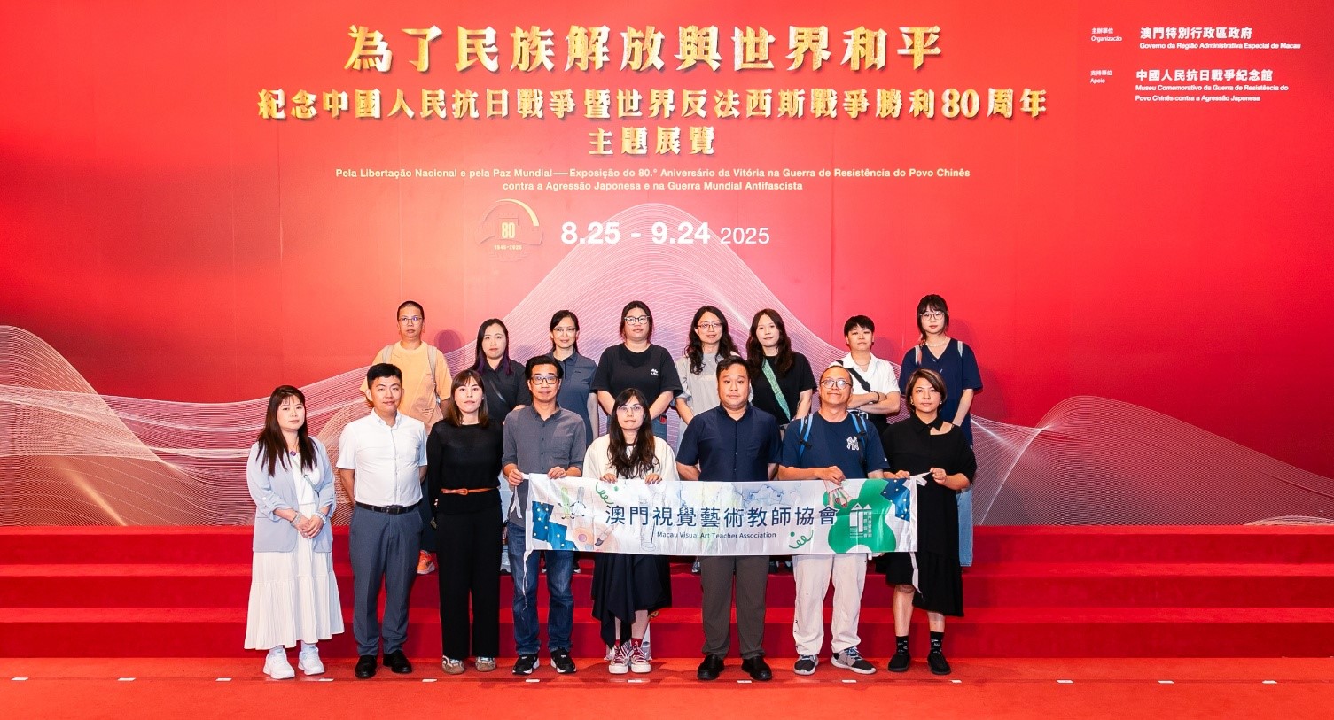 為紀念中國人民抗日戰爭暨世界反法西斯戰爭勝利80周年,澳門視覺藝術教師協會於日前(9月12日)組織理監事及會員共約20人,一同前往中國與葡語國家商貿合作服務平台綜合體,參觀「為了民族解放與世界和平——紀念中國人民抗日戰爭暨世界反法西斯戰爭勝利80周年」主題展覽。